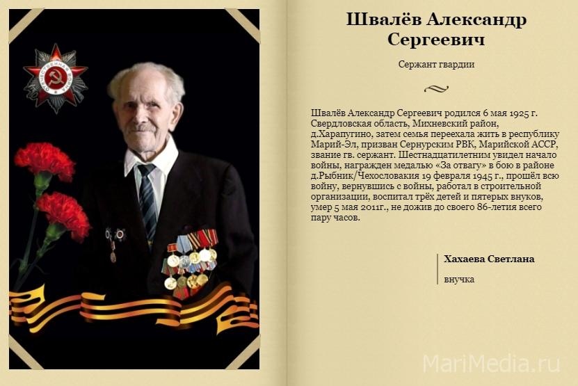 С 1 по 9 мая на страницах портала МариМедиа проходят стройными рядами фронтовики, участники Великой Отечественной войны. В год 75-ой годовщины Великой Победы советского народа над фашистскими захватчиками мы вспоминаем тех, кто вернулись победителями с той страшной войны, и тех, кто остался на полях сражений.