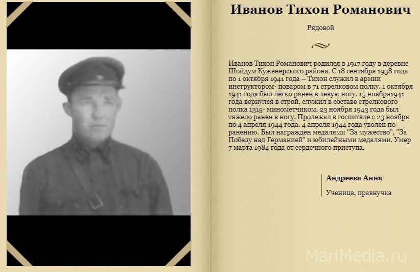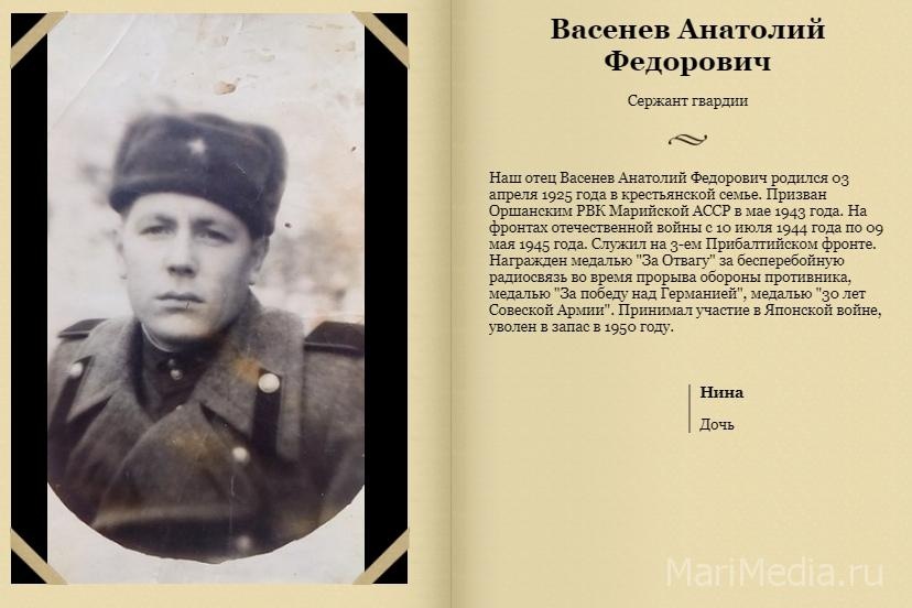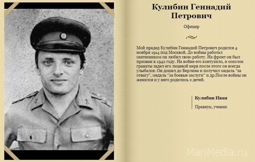 Напомним, 5 лет назад на сайте МариМедиа стартовал проект «Поколение героев». Каждый год он продолжает пополняться фамилиями героев, которые сражались в Великой Отечественной войне.