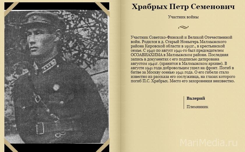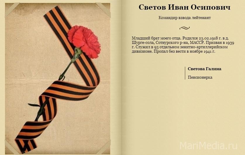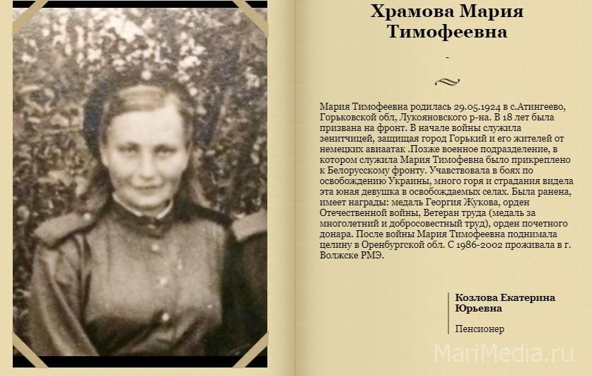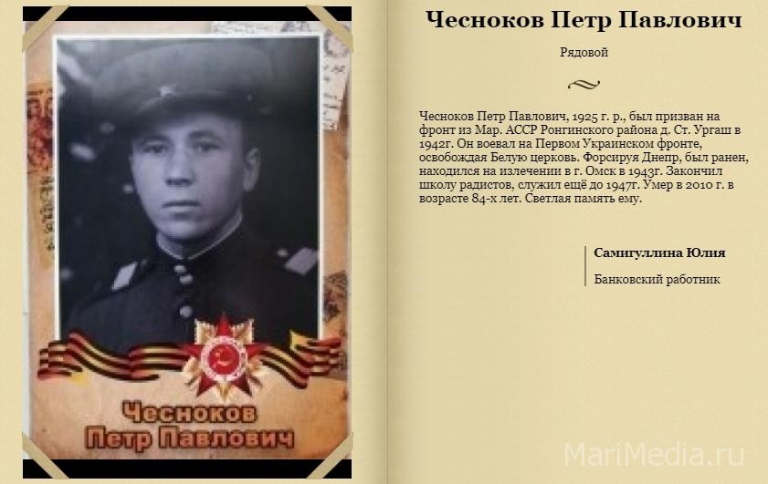 Только в мае 2020 года, в год 75-летия Победы, наши читатели прислали более полусотни историй и фотографий участников Великой Отечественной войны. Имена и судьбы героев на портале «МариМедиа» — «Поколение героев».