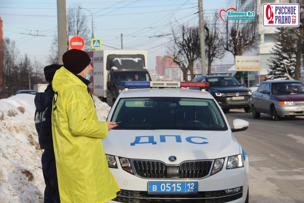 В Йошкар-Оле дежурит экипаж ДПС, который не только несёт службу по обеспечению безопасности дорожного движения, но и поздравляет девушек-водителей с предстоящим Международным женским днем.