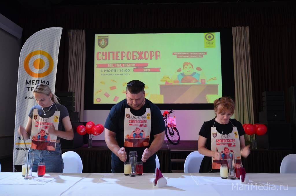 В Йошкар-Оле прошёл открытый чемпионат по скоростному поеданию продуктов «СУПЕРОБЖОРА-2021». Организаторы шоу — «Медиа Траст — Йошкар-Ола» и ресторан «Камелот». Все участники, и болельщики получили хорошее настроение и подарки. А самый главный приз — велосипед, получила Ольга Волкова, показав отличные результаты на всех этапах соревнования.