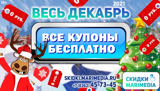 В преддверии Нового года подари себе и своим родным праздник. Все купоны на сервисе Скидки MARIMEDIA в декабре за ноль рублей. Просто заходи и забери свою скидку, на понравившиеся товары или услуги.