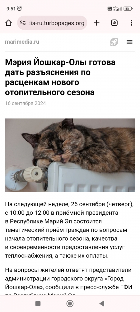 Необычный отклик пришёл на публикацию новости на сайте marimedia.ru. Нам позвонила Наталья К. в надежде, что на фото-превью их кошка Ириска.