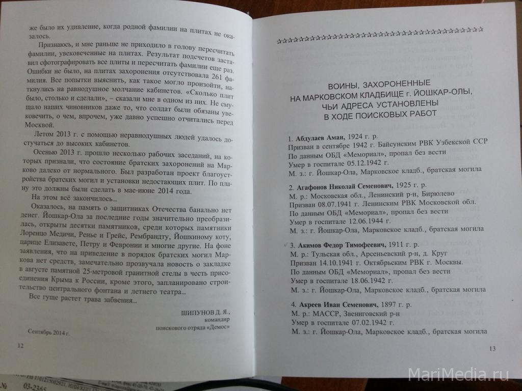 МариМедиа, 20 мая. Работа поискового отряда «Демос» и ИА «МариМедиа» приносит свои плоды. Ежедневно из разных уголков России приходят письма-ответы на запросы по поиску родственников воинов, павших в годы Великой Отечественной войны и захороненных в братской могиле в Йошкар-Оле.