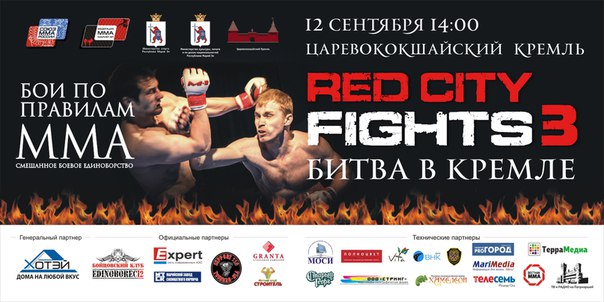 МариМедиа, 9 сентября. Всего три дня остается до начала одного из главных спортивных событий осени в Марий Эл - в эту субботу, 12 сентября, ровно в 14.00 в Царевококшайском кремле Йошкар-Олы будет дан старт третьему турниру из серии «RED CITY FIGHTS»*.