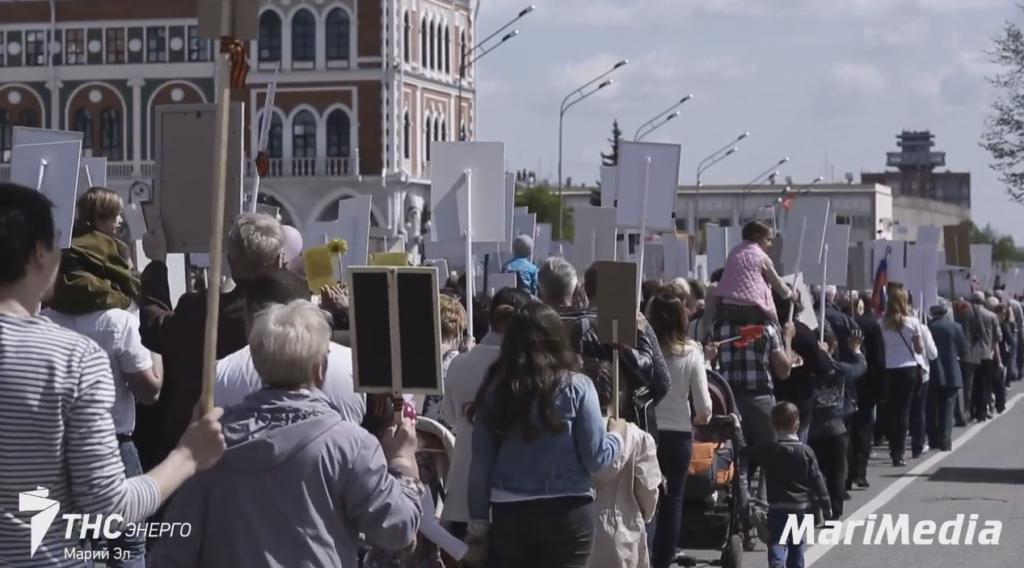 По неофициальным данным, в этом году к акции «Бессмертный полк» в Йошкар-Оле присоединились порядка 9000 человек. Правда в этом году Парад прошел без военной техники и знаменитых «Тополей», несмотря на то что трижды 29 апреля, 6 и 7 мая колонны военных орудий в репетициях участвовали.