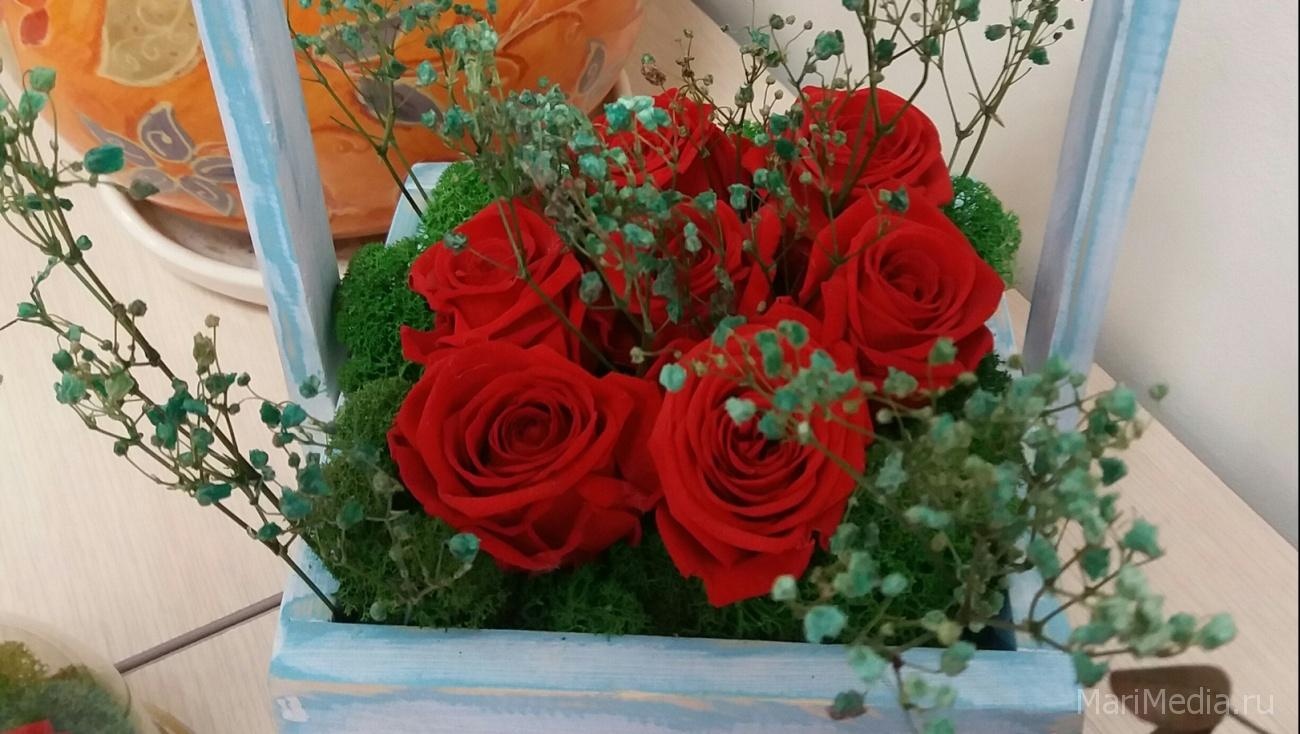 Сегодня офис ИА «МариМедиа» окунулся в цветочную феерию. Его в буквальном смысле этого слова заставили цветами и не простыми. А теми, что простоят в своем первозданном благоухающем виде целых пять лет.