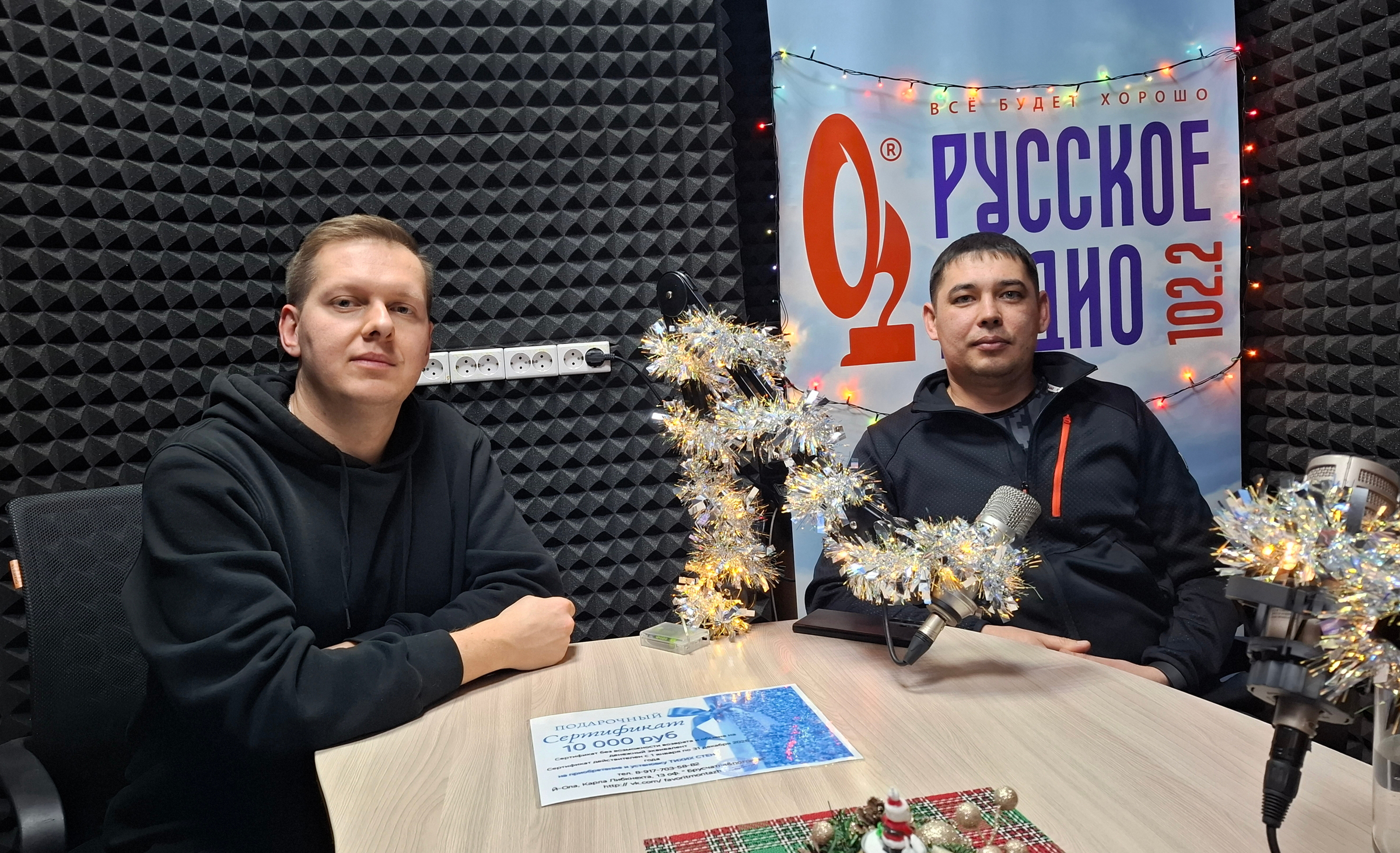 В подарок радиослушателям Дмитрий Александров передал сертификат на 10000 рублей на приобретение и установку «тихих стен» от компании «Фаворит Монтаж».