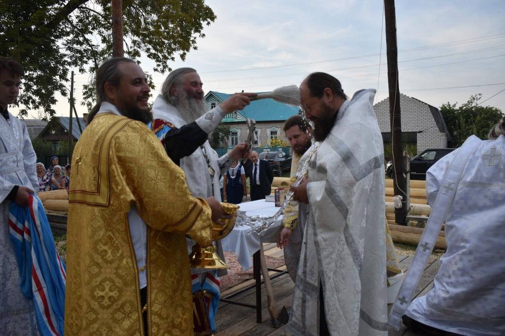 На церемонию освящение собрались местные жители, чтобы стать свидетелями начала возведения храма.
