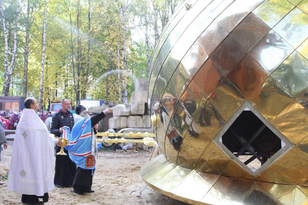 Четыре малых купола с крестами над входными крыльцами и алтарем были освящены и установлены чуть раньше — 22 сентября. Таким образом храм, строительство которого началось три года назад, внешне принял завершенный вид. Впереди — подведение коммуникаций, внутренняя отделка и облагораживание территории вокруг храма, сообщили в епархии.