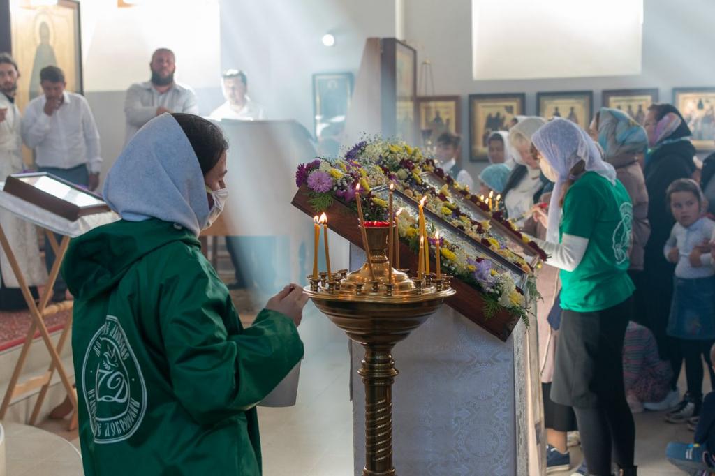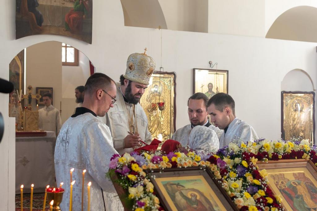 После освящения престола была совершена первая Божественная литургия. Многие прихожане причастились.