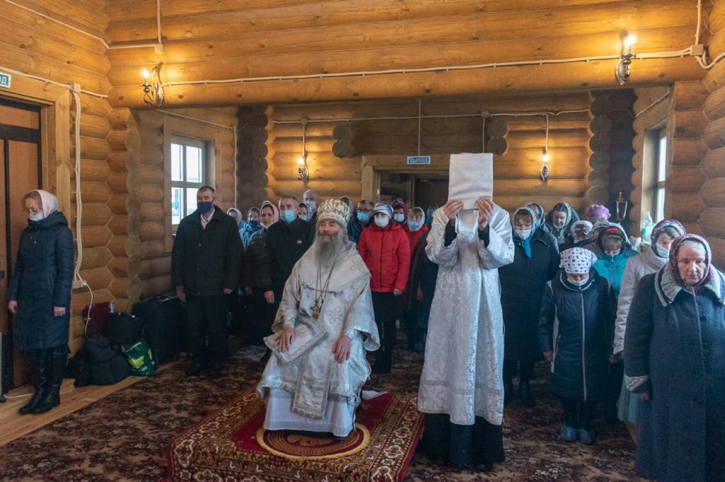 Владыке сослужили благочинный Пригородного церковного округа, настоятель храма «Всех святых, в земле Российской просиявших» посёлка Советский протоиерей Николай Ярошевич, настоятель храма Сретения Господня села Азаново иерей Артемий Промович, настоятель храма Святой Троицы села Вятское иерей Вячеслав Мамаев, настоятель храма Сретения господня села Русский Кадам иерей Владимир Каплунов, клирик храма Рождества Христова Йошкар-Олы иерей Никита Смирнов и клирик храма Рождества Пресвятой Богородицы села Семёновка протодиакон Михаил Козловский.