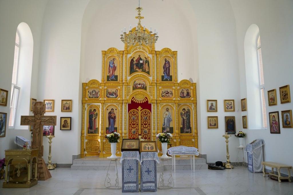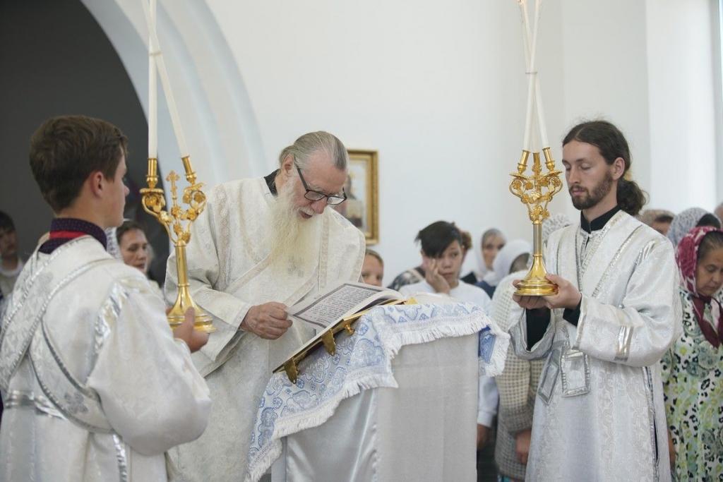 Освящение храма началось с торжественной встречи митрополита Иоанна, который внёс в храм частицы мощей святых Вифлеемских мучеников, предназначенные для вложения в престол храма, и мощи сщмч. Владимира Четверина, которые были вложены в антиминс, сообщили в епархии.