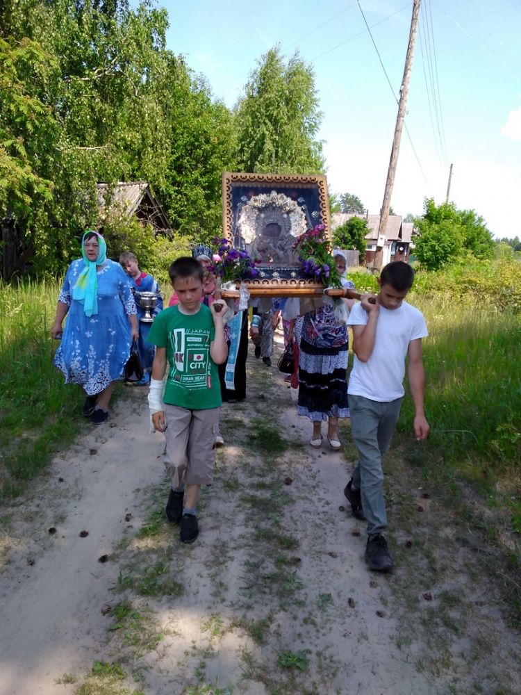 После освящения отец Николай окропил водой прихожан и обратился к ним с напутственным словом. Затем крестный ход с Владимирской иконой Божьей Матери прошёл по улицам деревни Суходол.