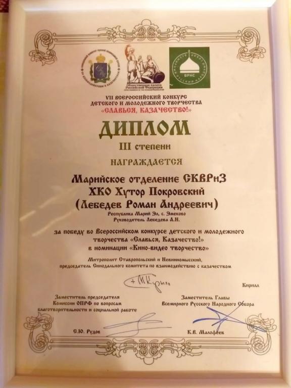 Кадет из Волжского района Роман Лебедев стал призёром Всероссийского конкурса детского и молодёжного творчества «Славься, казачество!». Роман состоит в казачьем военно-патриотическом клубе при Покровском храме села Эмеково.