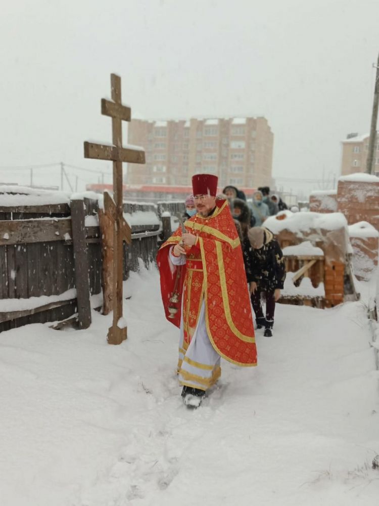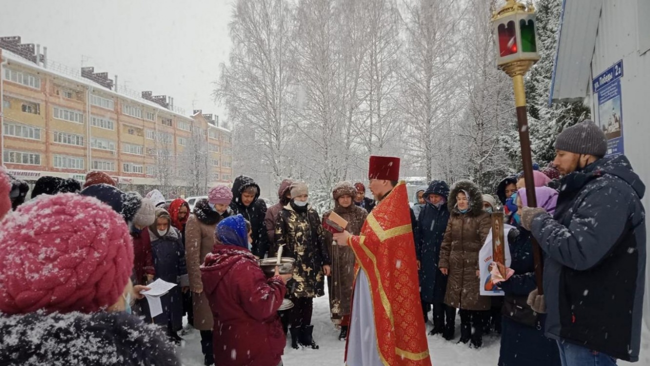 После литургии верующие прошли вокруг храма крестным ходом и были окроплены святой водой, сообщили в Йошкар-Олинской епархии.