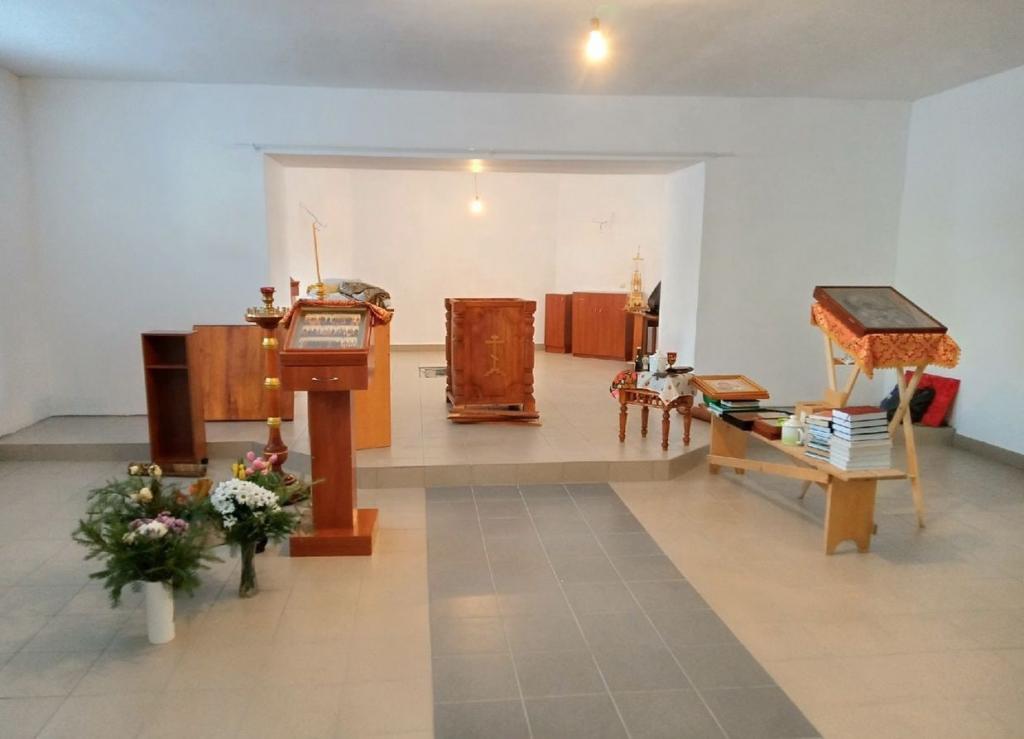 Из расположенного рядом молельного дома в новый храм верующие перешли ещё с началом Великого поста. Прихожане помогли батюшке перенести необходимую мебель и утварь, навели чистоту. Установили временный алтарный иконостас. И в течение великопостной недели здесь совершались службы.