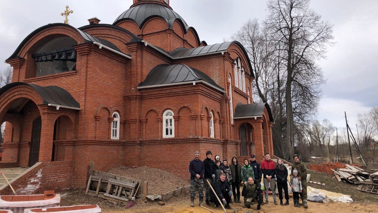 Помочь со стройкой приехала молодёжная дружина спортивного клуба «Рать». Ребята во главе со своим тренером-наставником Сергеем Калабаем заполняли песком пустоты между кирпичной кладкой основания стен. Поскольку экскаватор не мог проехать по весенней размякшей земле, молодые люди таскали песок ведрами.