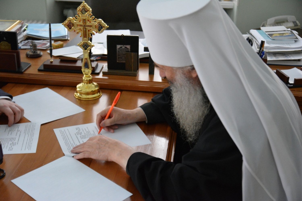 В епархиальном управлении накануне состоялось подписание соглашения о сотрудничестве между Йошкар-Олинской и Марийской епархией и Благотворительным фондом помощи семьям духовенства «Свете тихий» города Кирова.