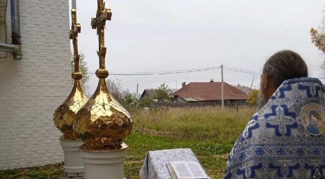 Два малых купола с крестами установили над алтарем и колокольней, сообщили в епархии.