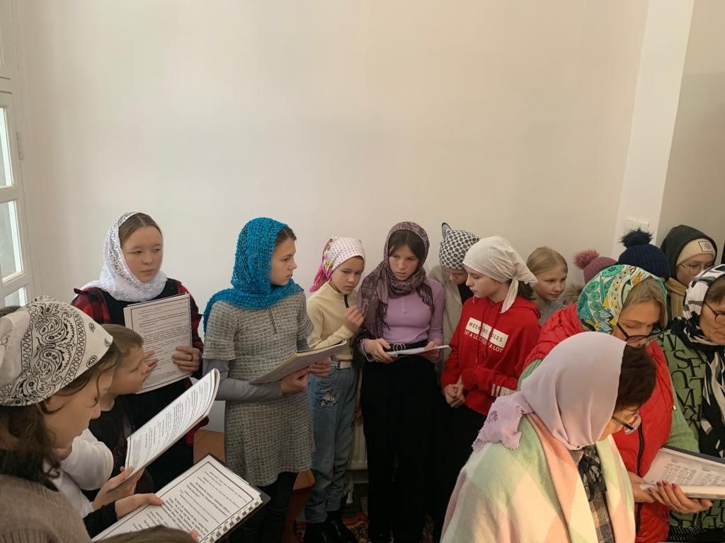Воспитанники воскресной школы впервые в этот день вместе с хором храма пели на клиросе за божественной литургией, совершил которую настоятель Петропавловского храма иерей Алексий Тарасов.