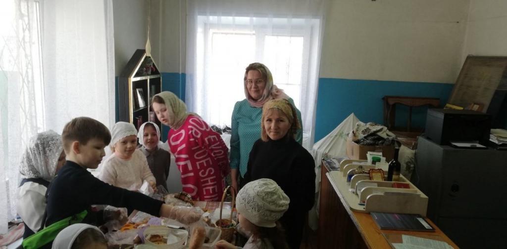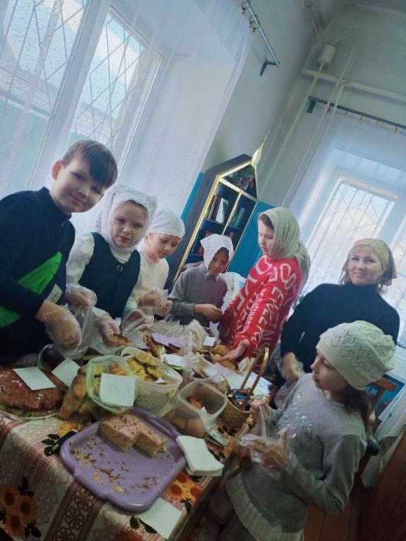 На столах были разложены пироги с разными начинками, плюшки, блины, домашние печенья и торты, заботливо приготовленные воспитанниками воскресной школы, их родителями и педагогами.