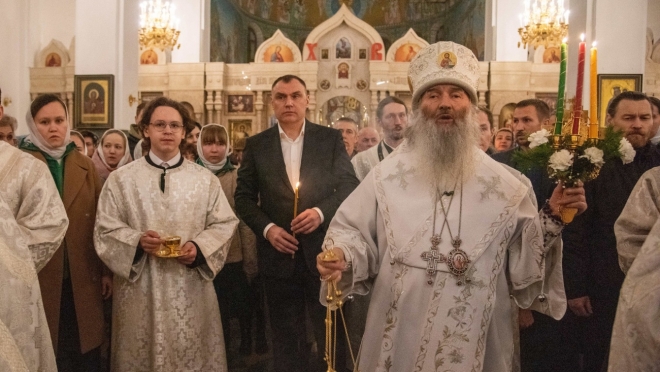 Сегодня ночью глава Марий Эл посетил пасхальное богослужение в кафедральном соборе Благовещения Пресвятой Богородицы. Литургию по случаю одного из главных христианских праздников — Пасхи — совершил митрополит Йошкар-Олинский и Марийский Иоанн.