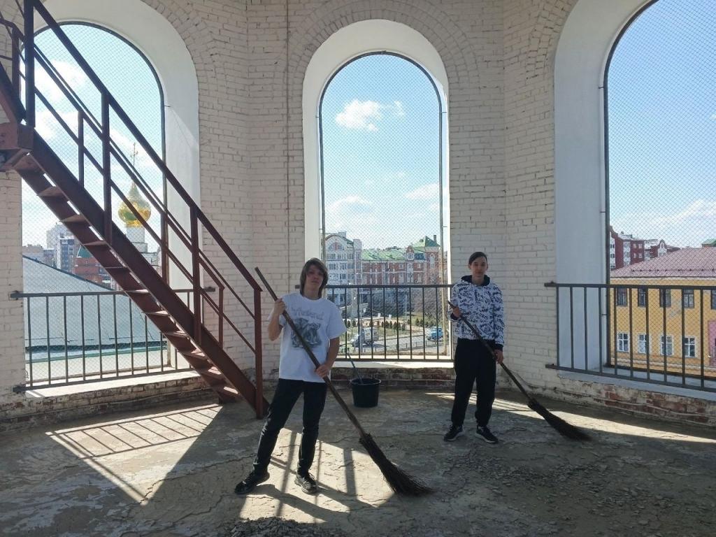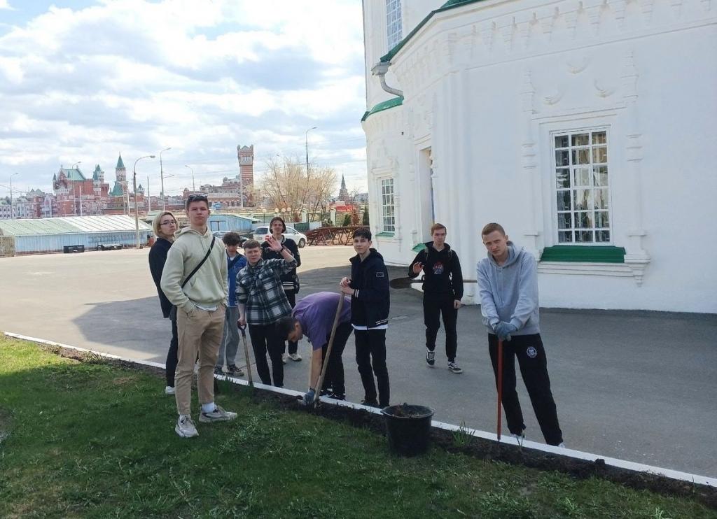 Студенты Радиомеханического техникума Йошкар-Олы помогли навести порядок на территории Вознесенского собора.