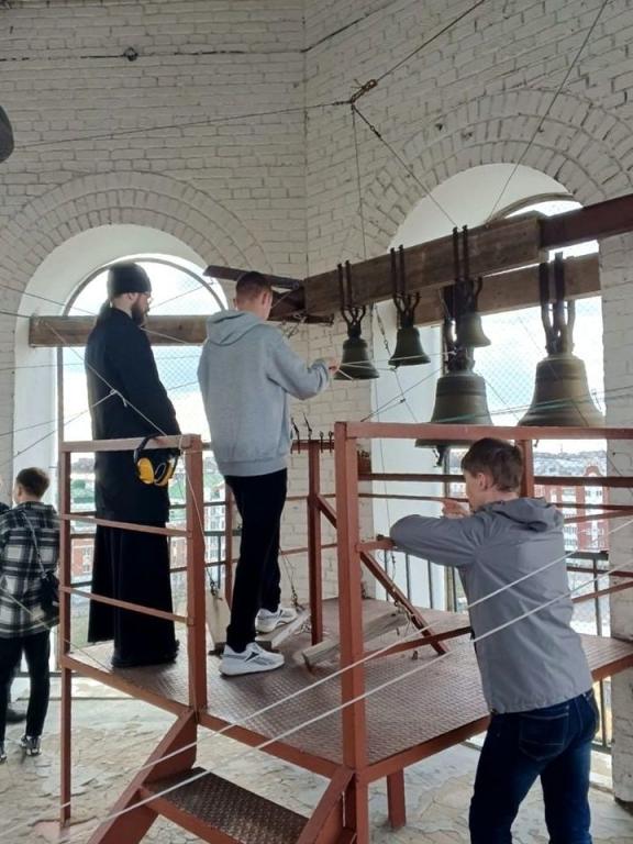 В завершение, поблагодарив ребят за проделанную работу, чтец Григорий Михеев провёл для студентов мастер-класс по колокольному звону и в ходе небольшой экскурсии познакомил желающих с историей храма и интерьерами собора, рассказали в Йошкар-Олинской епархии.