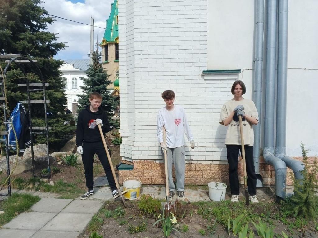 Молодые люди подмели двор, вскопали грядки, очистили брусчатку от сорняков.