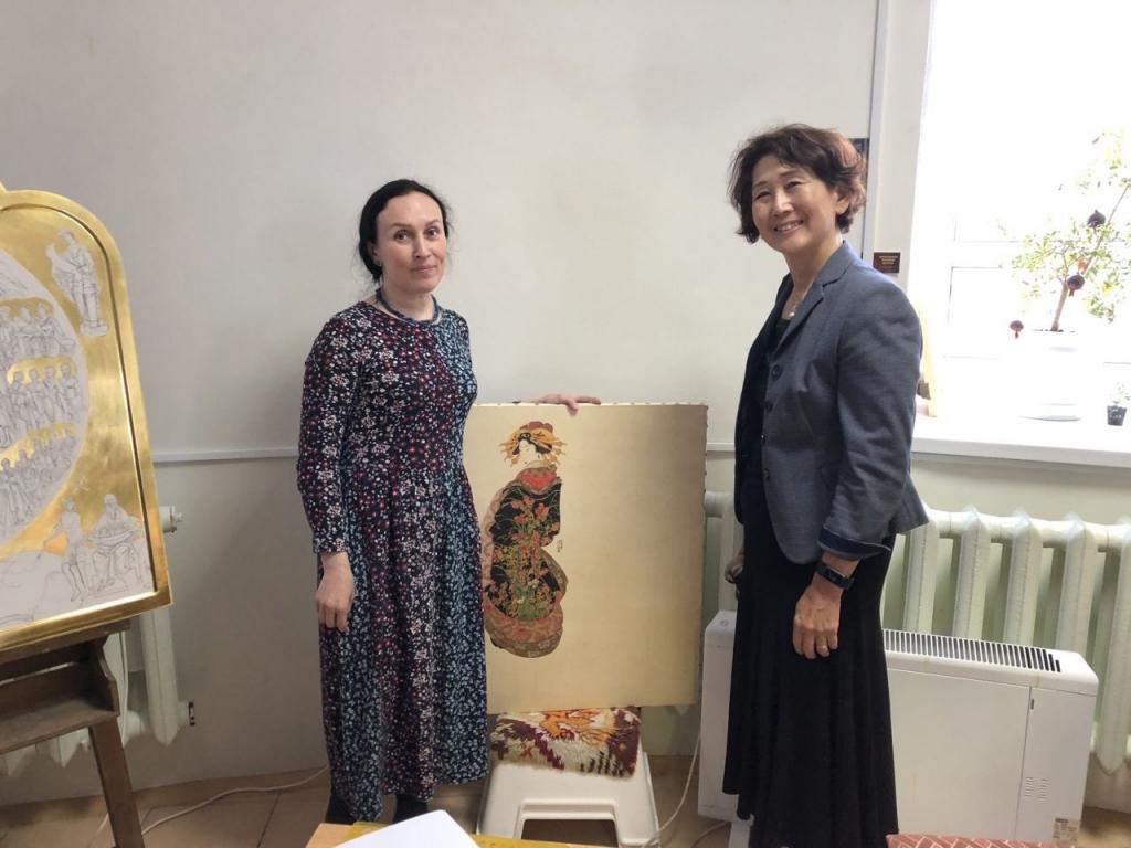 Не обошли вниманием гости и Царевококшайскую иконописную мастерскую в Православном центре. Наши иконописцы поделились с госпожой Хироко секретами мастерства. Особенно её заинтересовали особенности технологии золочения, нанесения резных орнаментов, а также реставрация старинных икон, рассказали в пресс-службе епархии.