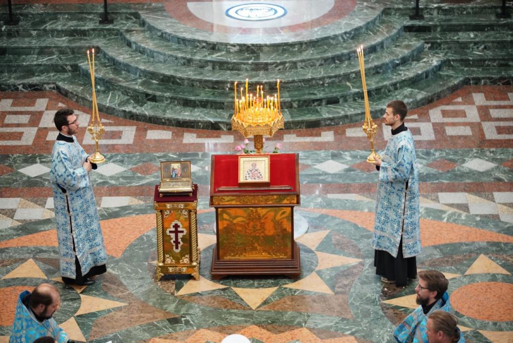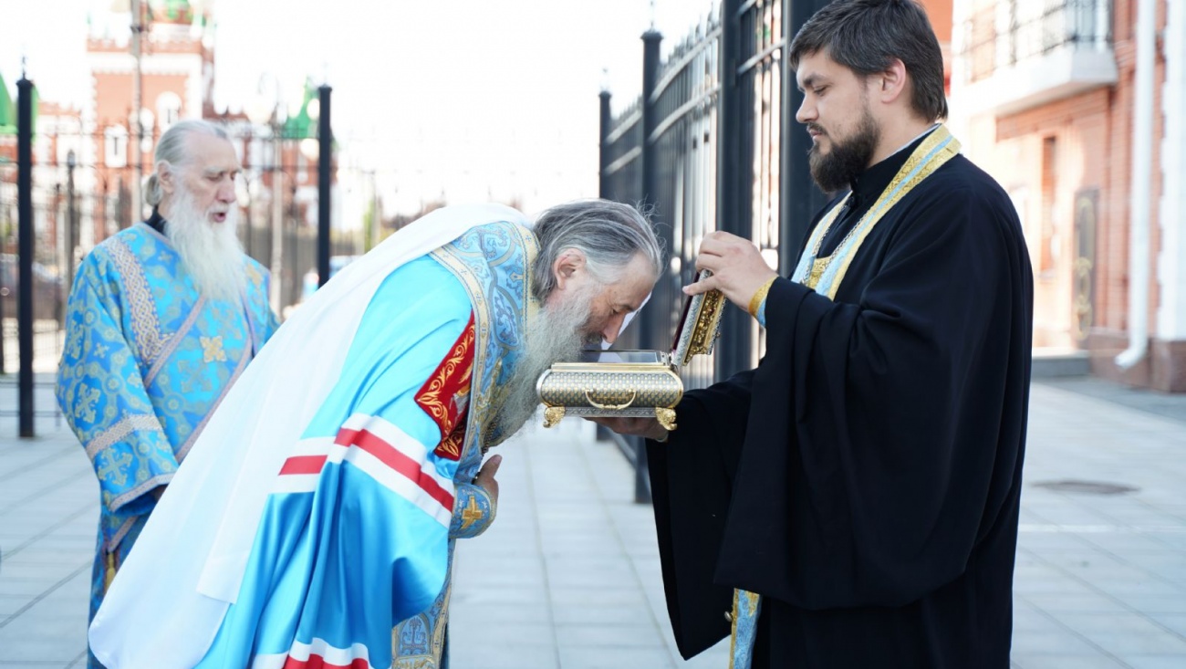 В Благовещенском кафедральном соборе святыню из рук представителя Синодального отдела по делам молодёжи принял митрополит Йошкар-Олинский и Марийский Иоанн.