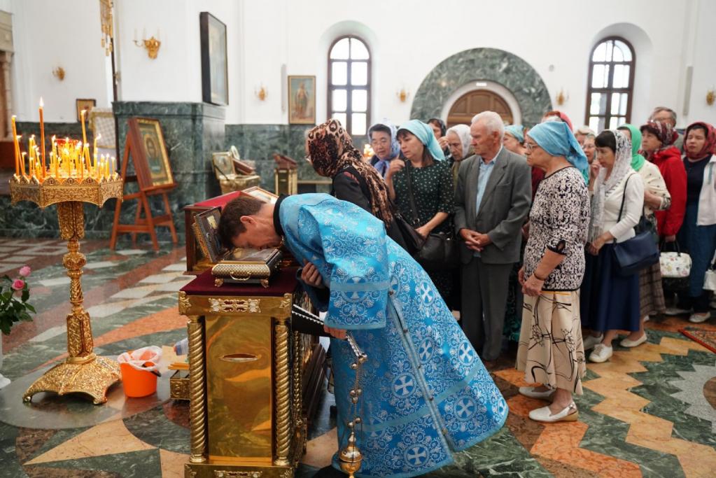 В храме собрались десятки верующих, чтобы поклонится святыне.