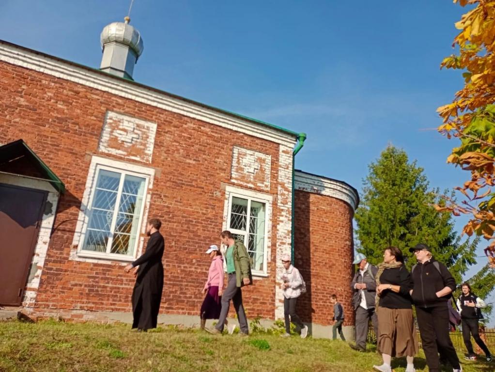Основной целью путешествия стала Крестовоздвиженская церковь села Емангаши, настоятелем которой является иерей Сергий Иванов. Сейчас в храме проходят регулярные службы по пятницам. Паломники ознакомились с историей храма, его непростой судьбой в советские годы и нынешним возрождением.