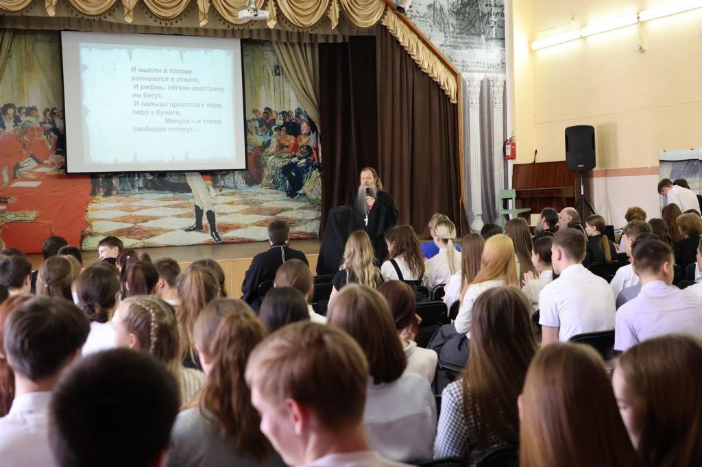 В ходе визита Артемий Владимиров встретился со старшеклассниками средней школы № 9 им. А.С. Пушкина. Проповедник обсудил с ребятами тему нравственной чистоты на примере жены Александра Пушкина Натальи Гончаровой.