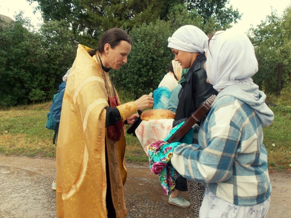 На протяжении всего маршрута местные жители встречали крестоходцев хлебом-солью, накрывали столы. Отец Василий служил молебны, кропил всех святой водой, разговаривал с людьми, отвечая на насущные вопросы.