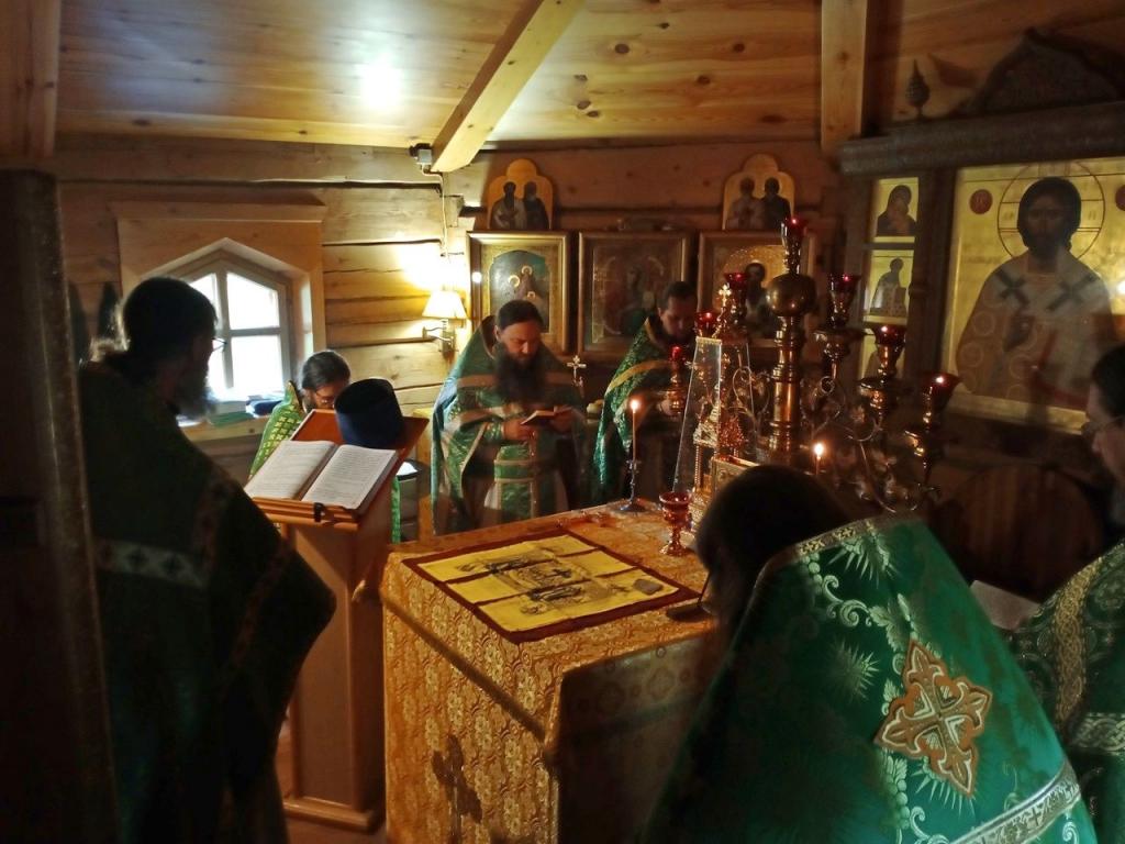 8 октября в обители была совершена соборная божественная литургия, возглавил которую благочинный Килемарского церковного округа, настоятель храма Пророка Илии п. Килемары протоиерей Андрей Романов в сослужении священников других храмов.