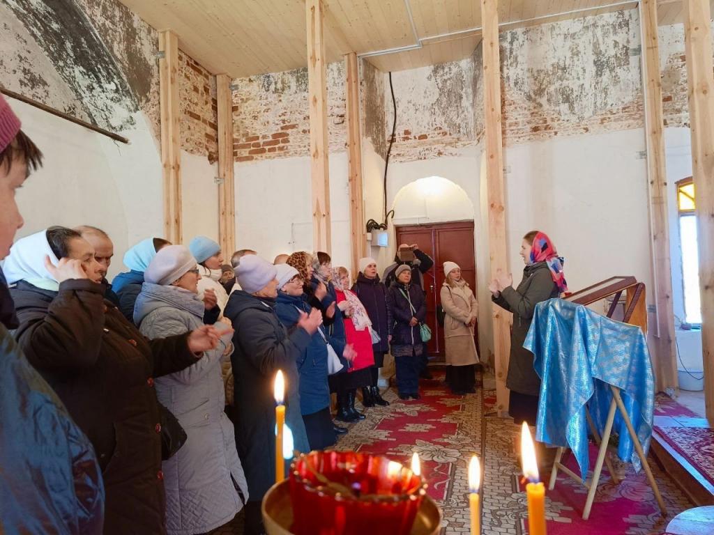 В дар восстанавливаемому храму гости из Йошкар-Олы передали набор покровцов и воздух, а также книгу о храмах Марийской земли и сувенирную тарелку с изображением города Йошкар-Олы.