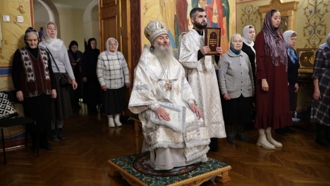 Владыке сослужили секретарь Йошкар-Олинского епархиального управления иерей Димитрий Дьяков, клирик Благовещенского кафедрального собора диакон Андрей Дружинин, а также гость из Ярославской епархии протоиерей Алексий Кириллов.