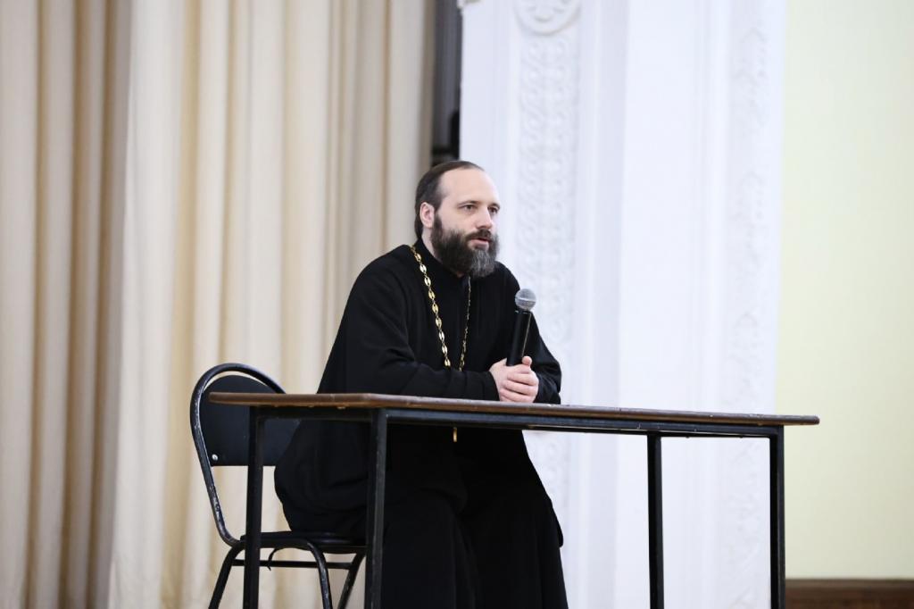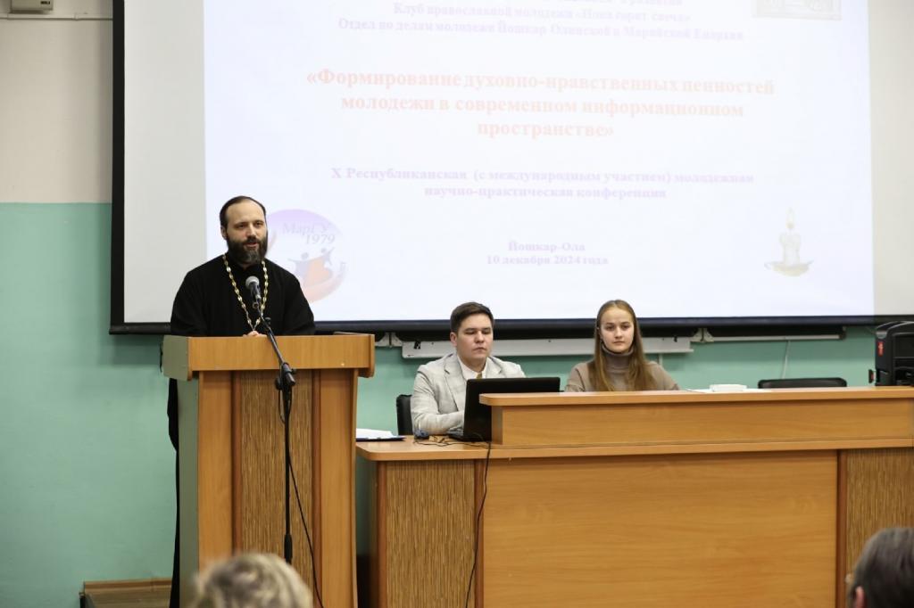 Кроме того, отец Сергий выступил на Х Республиканской молодёжной научно-практической конференции «Формирование духовно-нравственных ценностей молодёжи в современном информационном пространстве», которая прошла в МарГУ. Мероприятие собрало педагогов из Марий Эл, Чувашии и Республики Беларусь, а также священнослужителей республики.