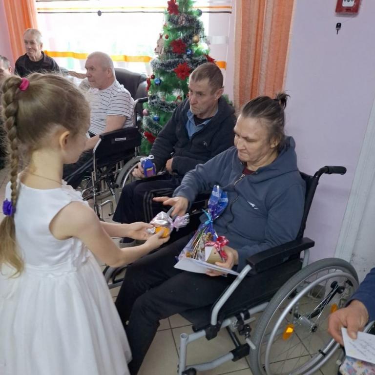 После концерта юные артисты раздали всем сделанные своими руками подарки и открытки с тёплыми пожеланиями. Не обделили вниманием даже лежачих больных — в палаты к ним тоже пришли с подарками.
