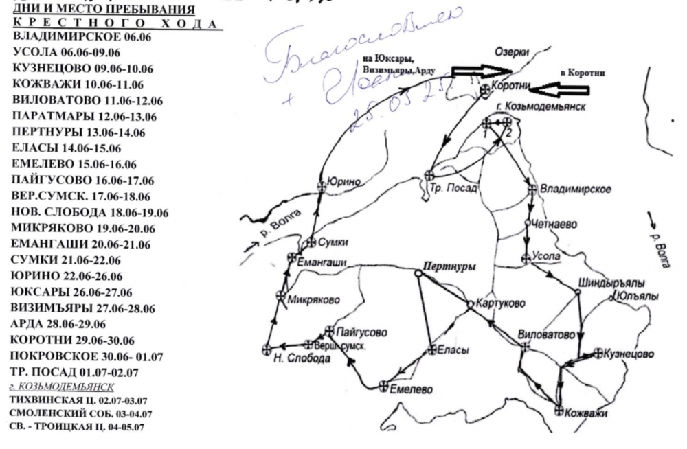 С 6 июня по 5 июля по Горномарийскому и Юринскому районам, а также части Килемарского района Марий Эл пройдёт традиционный крестный ход с Владимирской иконой Божией Матери.
