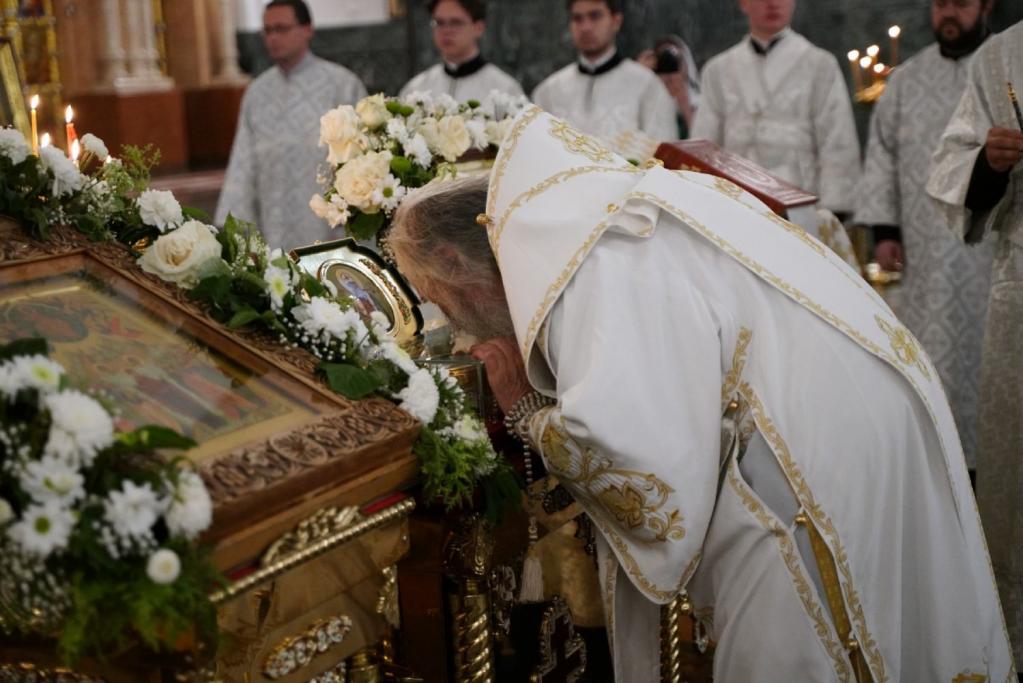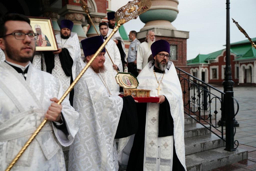 Перед этим митрополит Йошкар-Олинский и Марийский Иоанн провёл службу. По окончании всенощного бдения архиепископ с сослужащим священством совершили молебен святителю Тихону, после чего пронесли святыню к автомобилю.