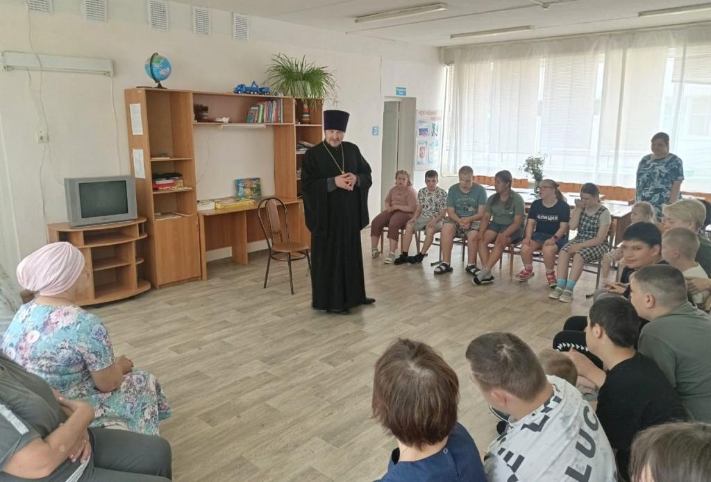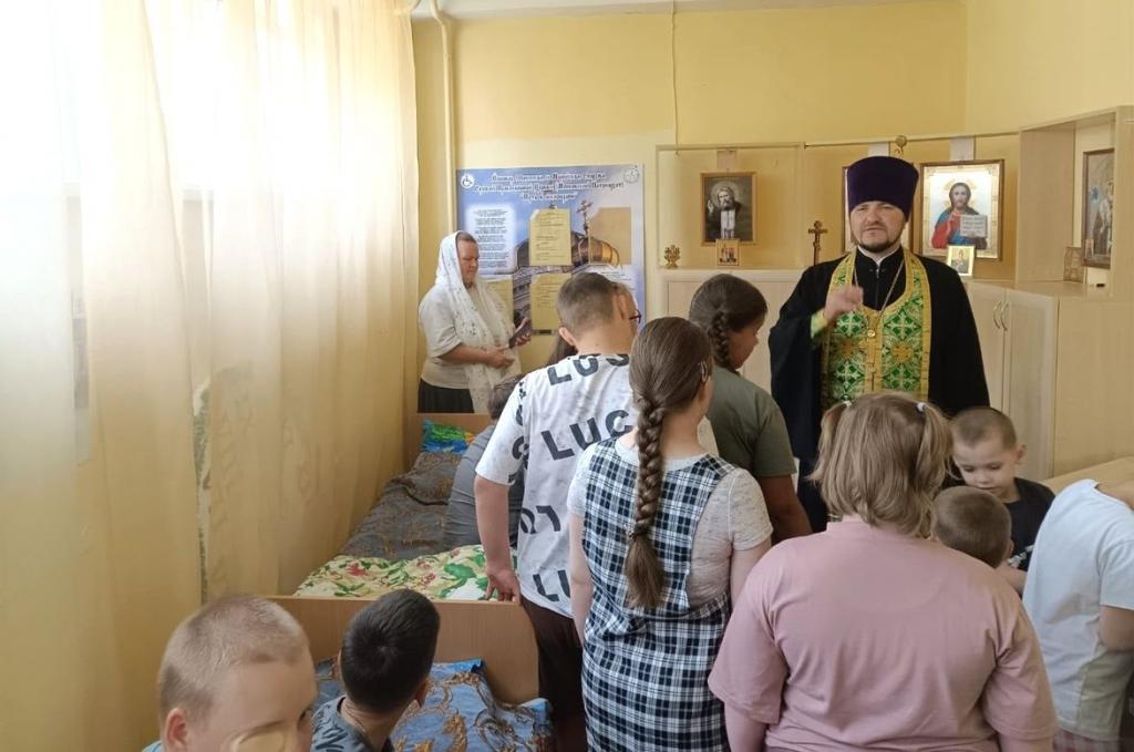 Отец Виталий провёл с ребятами беседу на тему «Святые Пётр и Феврония». В молельной комнате был отслужен молебен святым благоверным князьям Петру и Февронии, батюшка окропил всех святой водой.
