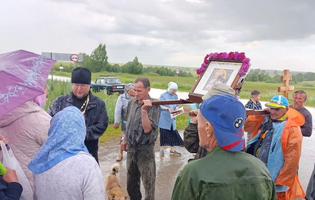 Святыню радостно встретили в селе Русский Кугунур. Далее крестоходцы прошли через деревню Актугансола к селу Юледур. Православным не помешала даже ненастная погода с дождём.