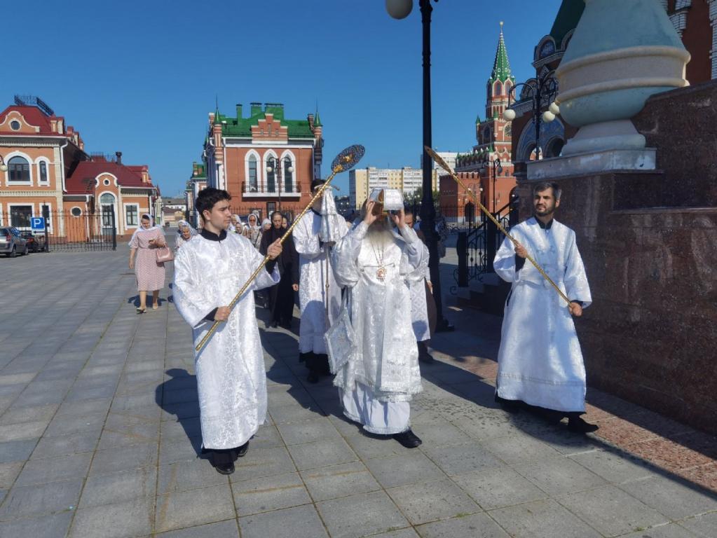Владыке сослужили секретарь Йошкар-Олинской епархии иерей Димитрий Дьяков, ключарь кафедрального собора протоиерей Сергий Поглазов, клирики собора иерей Евгений Самойлов, иерей Иоанн Милютин, иерей Александр Староверов и диакон Андрей Дружинин, а также протодиакон Михаил Козловский и клирик храма иконы «Всех скорбящих Радость» иерей Игорь Коваль.