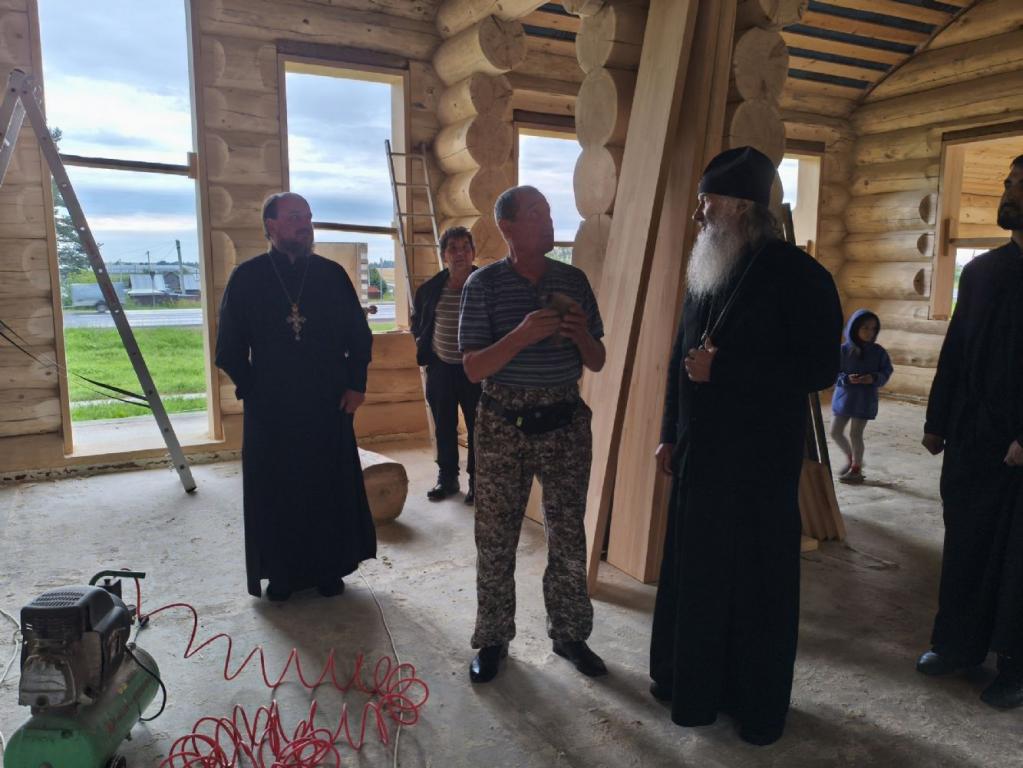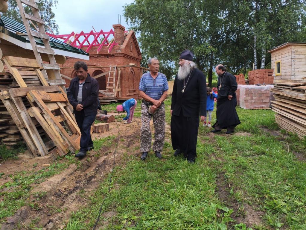 Возвращаясь в Йошкар-Олу, митрополит Иоанн заехал в посёлок Алексеевский Советского района, где ознакомился с ходом работ на строительстве там храма в честь преподобного Серафима Саровского.