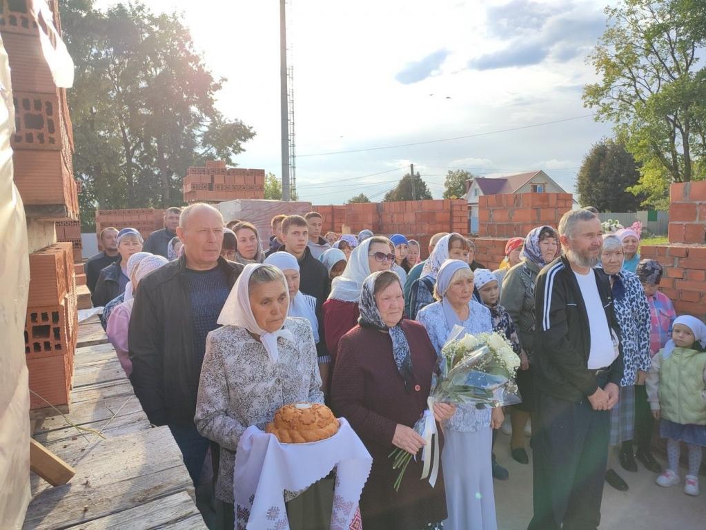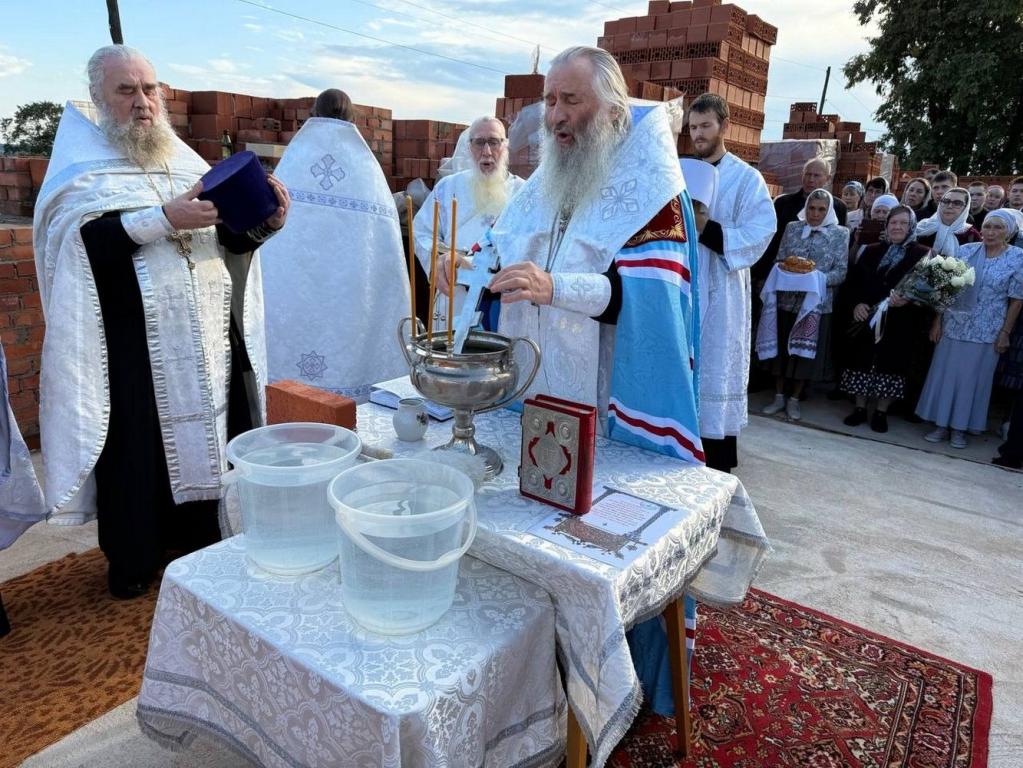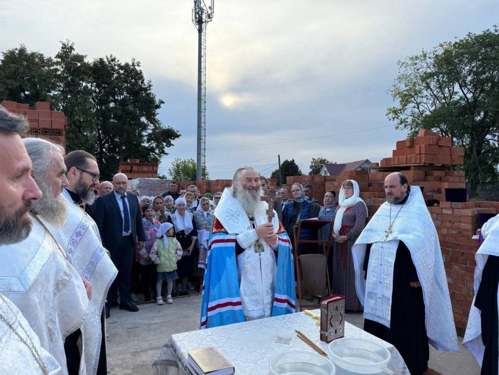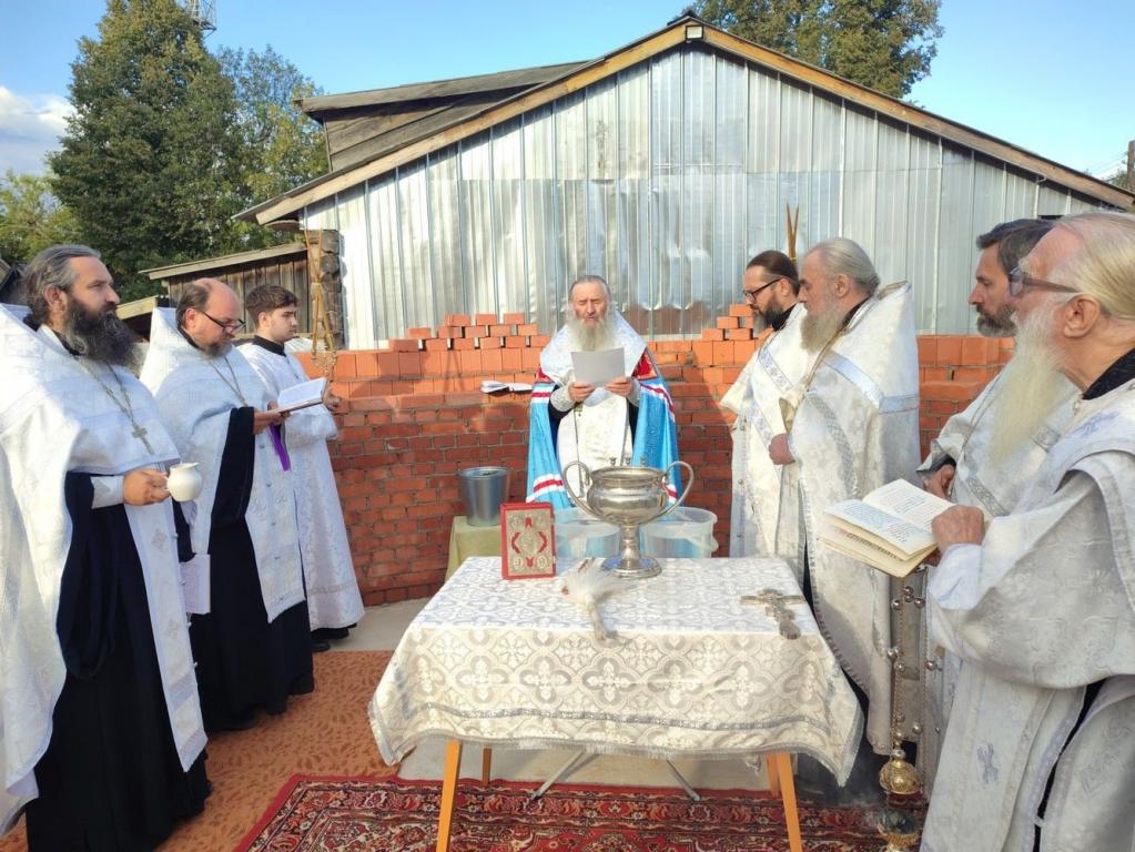 Владыка освятил камень в основании храма и зачитал закладную грамоту с указанием имени патриарха и мощей, которые будут заложены в престол. После чего капсулу с грамотой возложили в алтарную стену. Архипастырь с чтением молитв окропил святой водой все четыре стороны храма и поклонный крест.