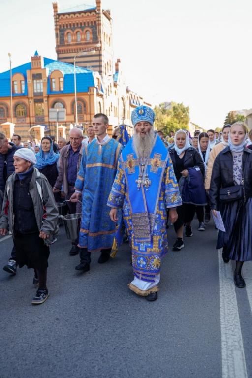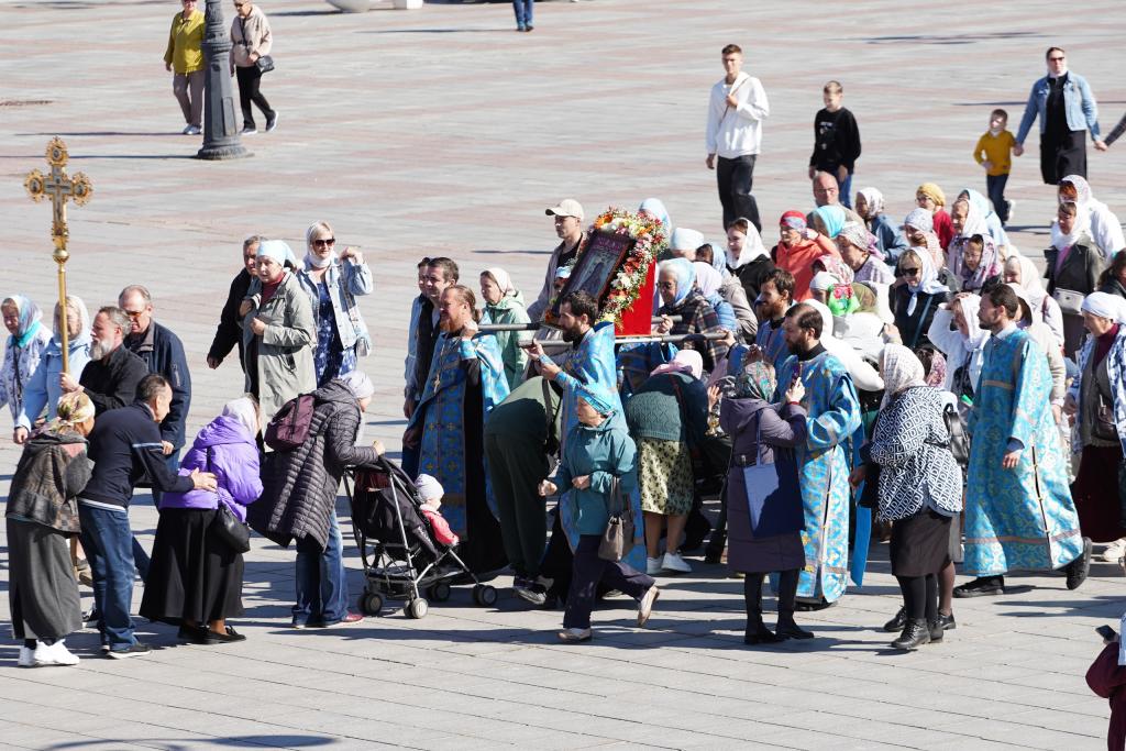 Шествие началось после литургии. Святыню пронесли вокруг кафедрального собора, после этого верующие направились в Успенский храм.