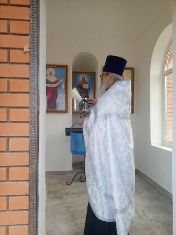 Освящение провёл настоятель храма Введения во храм Пресвятой Богородицы иерей Василий Решетников. Отслужив водосвятный молебен, он окропил святой водой стены часовни и всех собравшихся на это радостное событие.